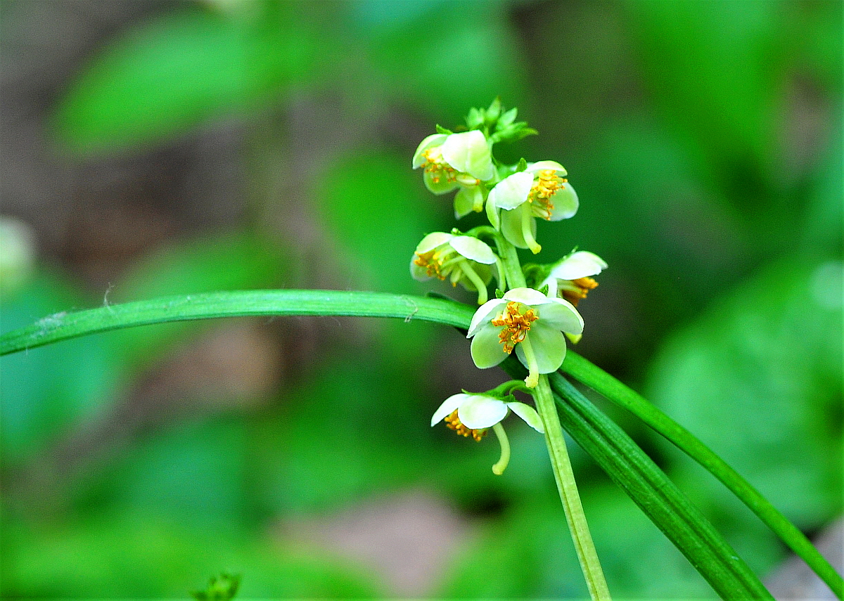 꽃은 6∼7월에 피고 노란빛을 띤 흰색이거나 흰색이며 5∼12개가 밑을 향하여 총상꽃차례로 달린다.
