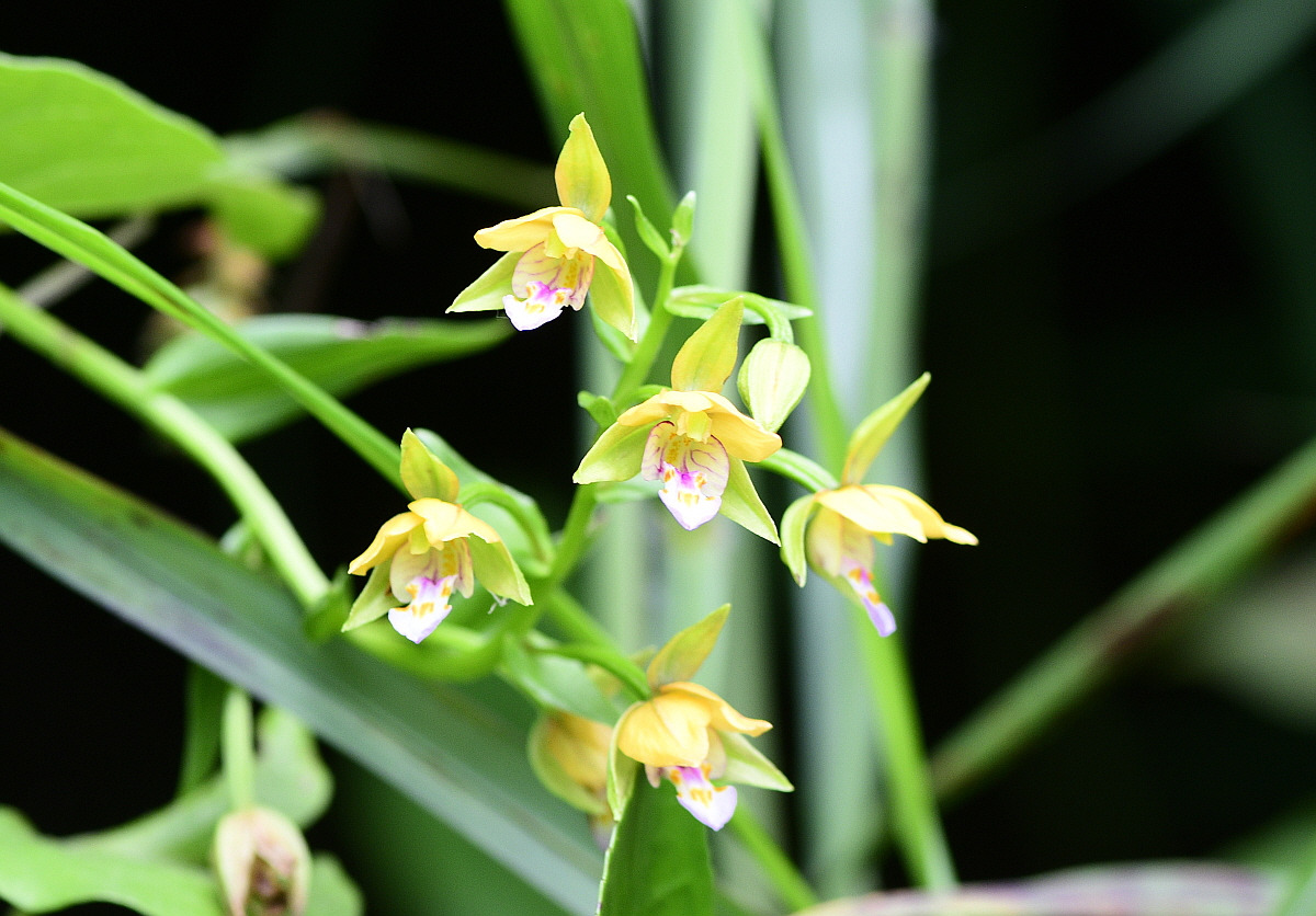입술꽃잎은 흰색이고 꽃잎과 길이가 같으며 안쪽에 붉은빛이 강한 자주색 반점이 있다.