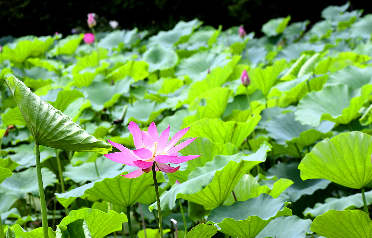연꽃은 연못에서 자라고 논밭에서 재배하기도 한다.