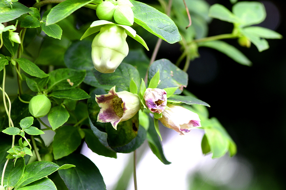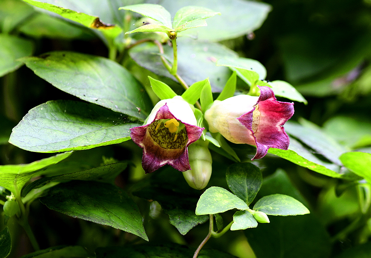 꽃은 8∼9월에 종 모양의 자주색으로 짧은 가지 끝에서 밑을 향해 달린다.