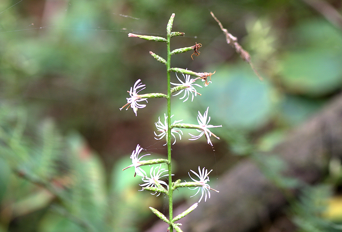 꽃은 7∼9월에 흰색으로 피고 줄기 끝에 여러 개의 두상화(頭狀花:꽃대 끝에 꽃자루가 없는 많은 작은 꽃이 모여 피어 머리 모양을 이룬 꽃)가 총상꽃차례를 이루며 달린다.