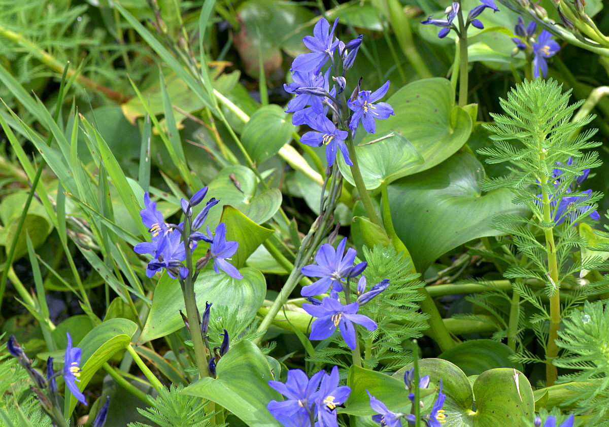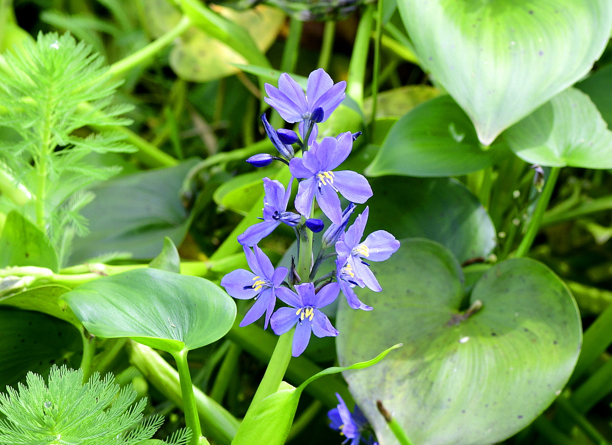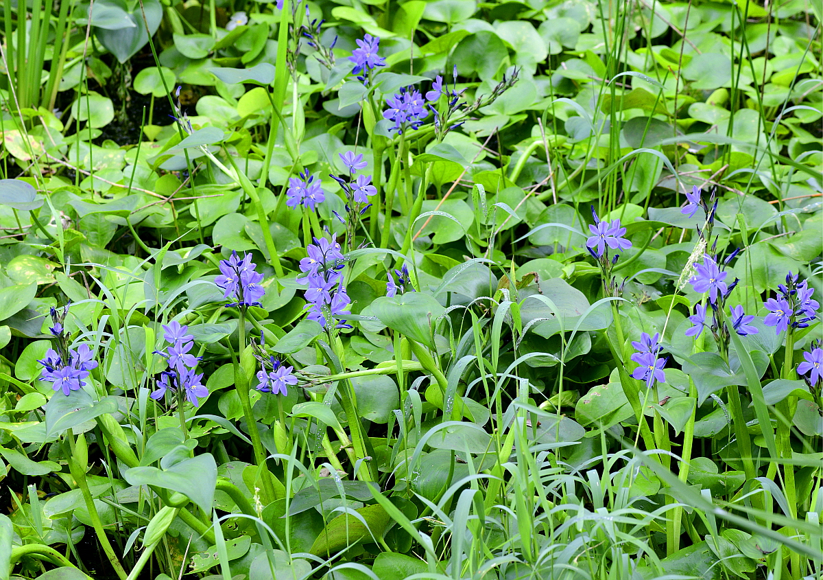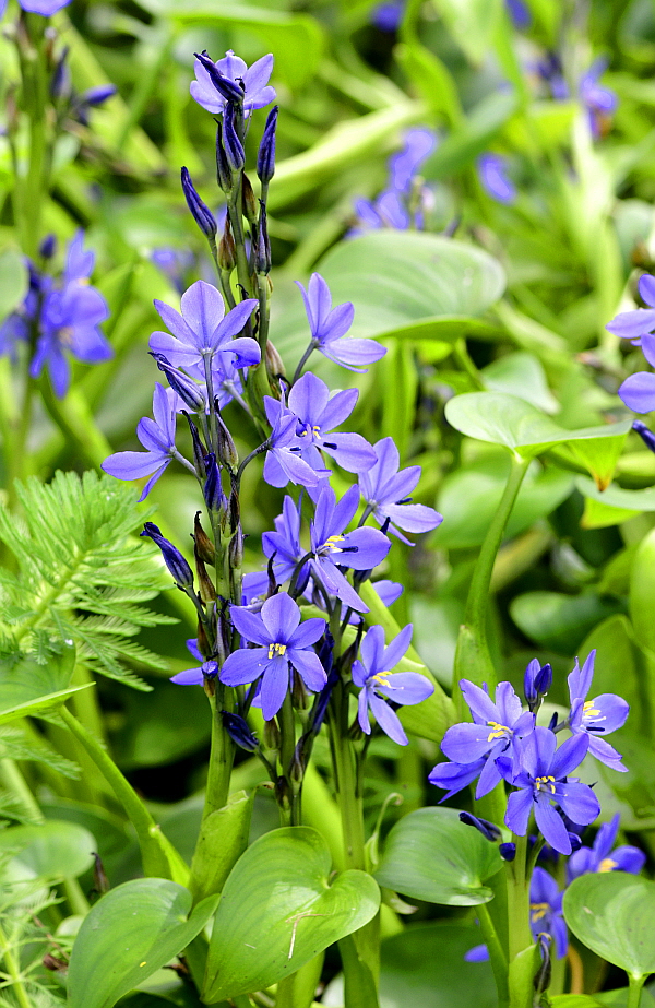 물옥잠은 논과 늪의 물 속에서 자란다.