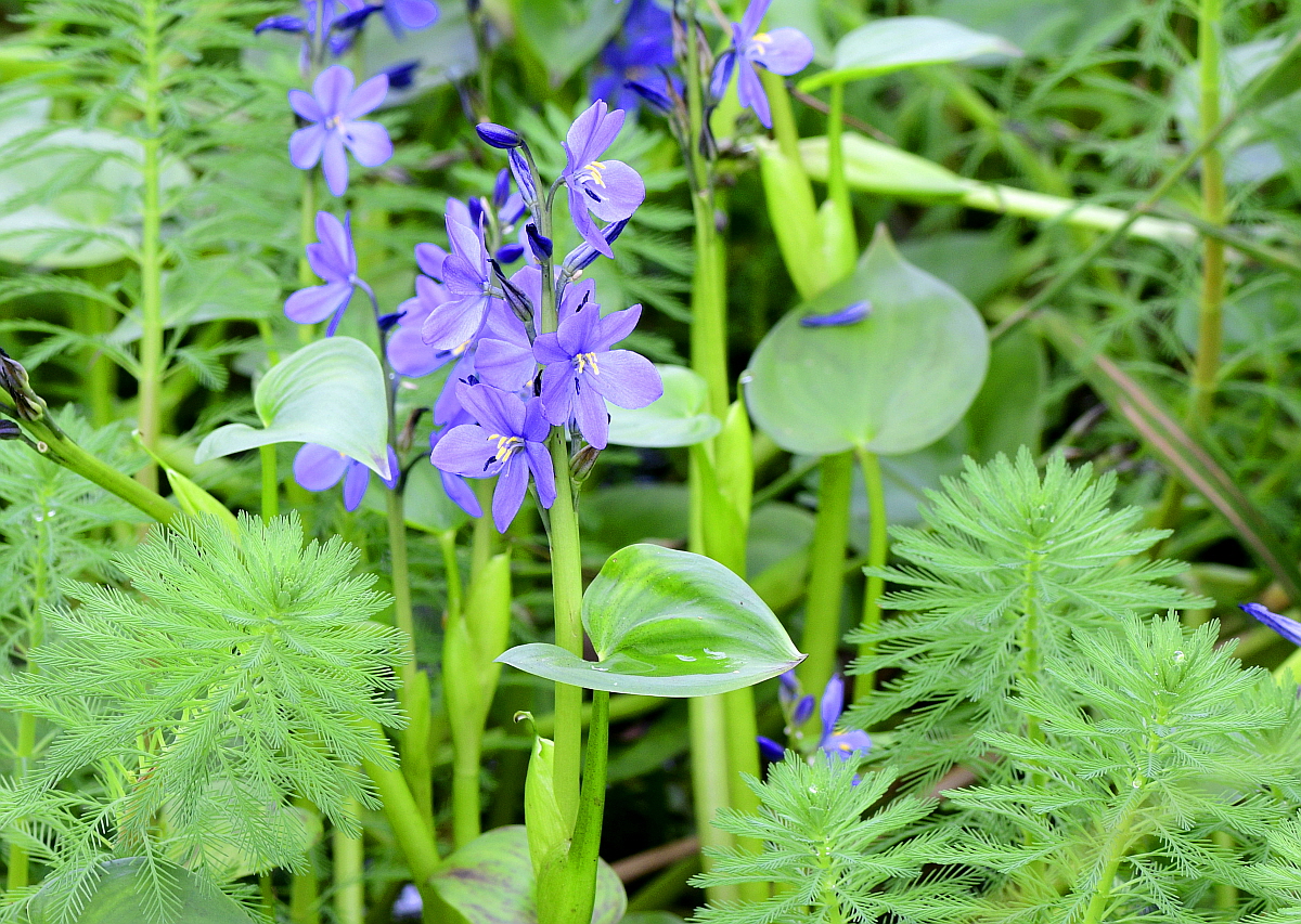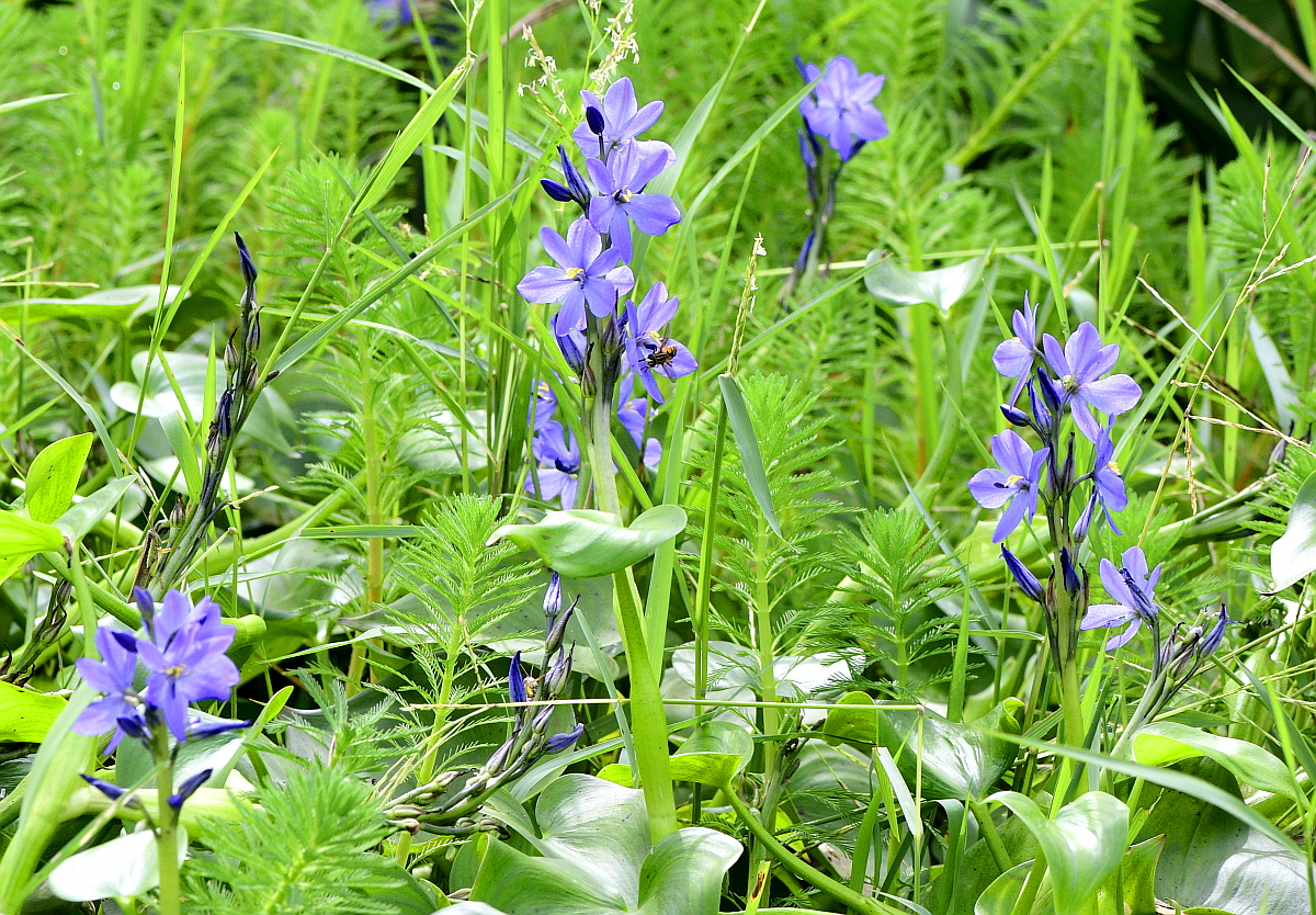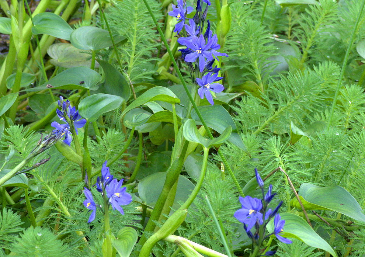 물옥잠은 논과 늪의 물 속에서 자란다.