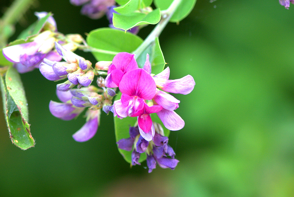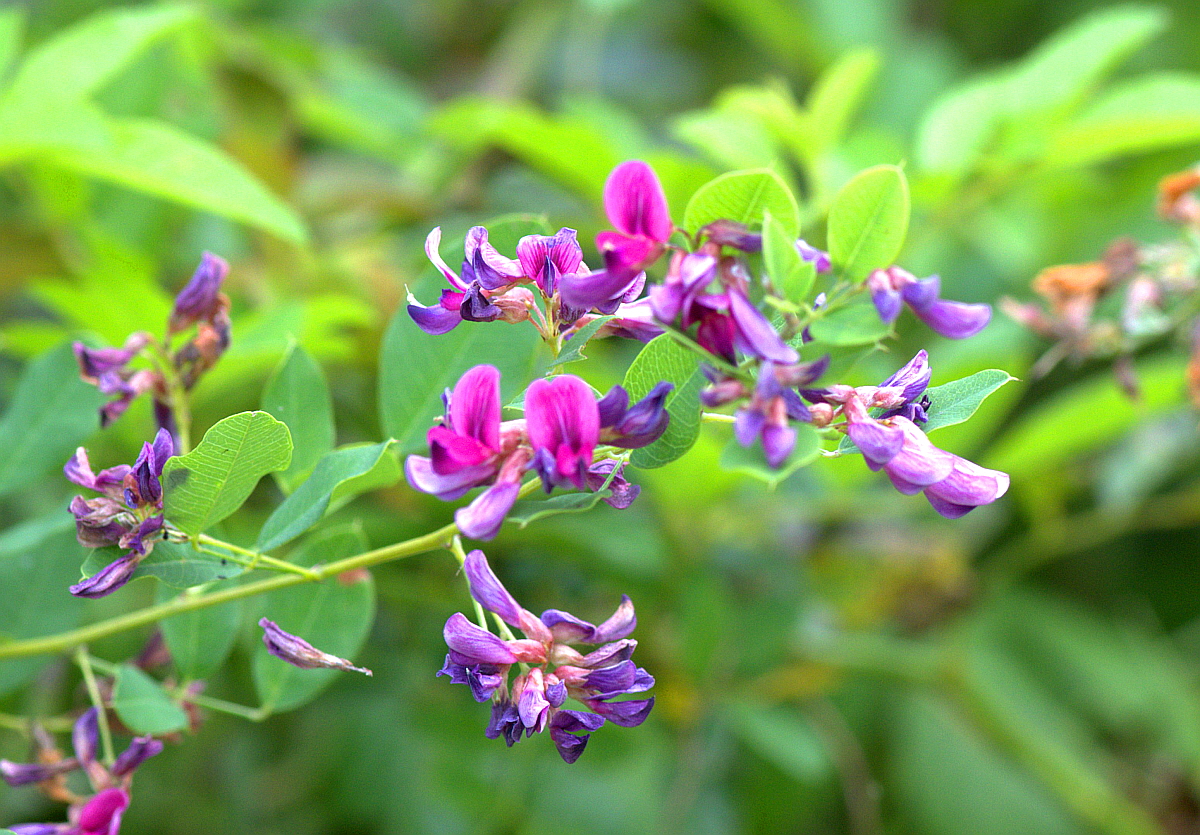 꽃은 8~9월에 홍자색, 붉은 자주색으로 나비 꼴로 총상화서(總狀花序)에 달려 핀다.