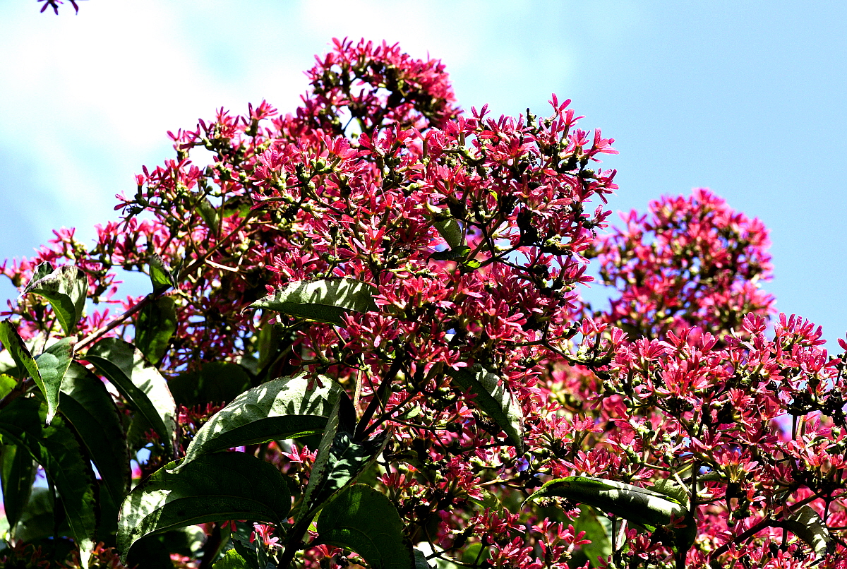 꽃받침은 꽃이 진 후에 자홍색으로 변하여 꽃모양으로 보여 두번 꽃이 개화한 듯 보인다.