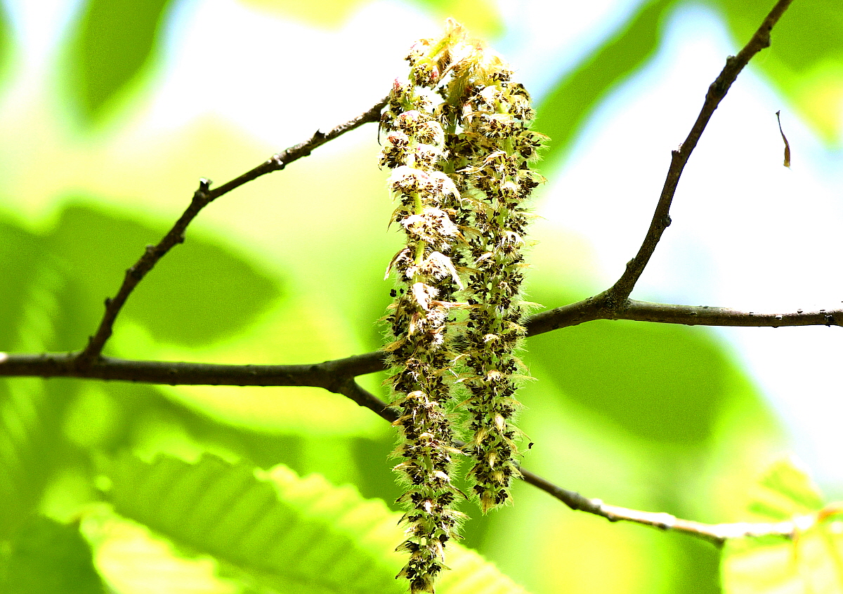 수꽃은 길게 늘어지고 암꽃은 가지 끝에 달리는 모습입니다.