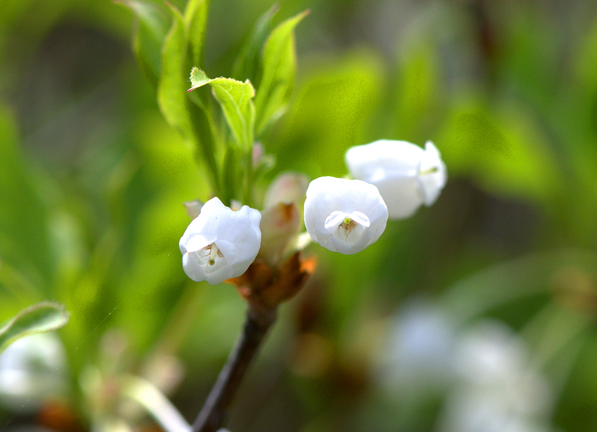 꽃은 4~5월에 흰색으로 방울 모양으로 가지끝에 총상꽃차례를 이루어 밑으로 처지며 5∼15개의 꽃이 달린다.