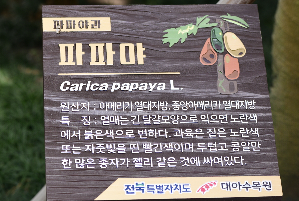파파야는 열대 아메리카가 원산이다. 높이 약 6m, 지름 약 20cm이다.