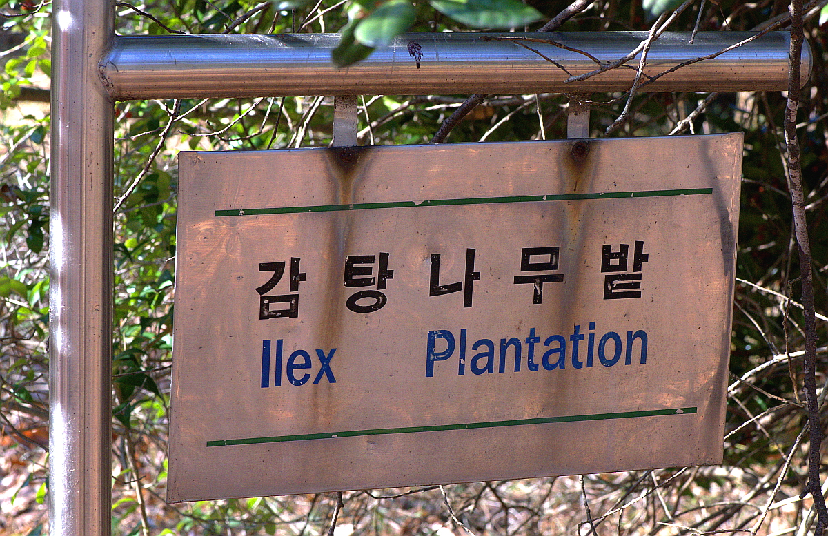 감탕나무밭에서 나무 가지 사이에 '우트차가라' 이름표가 보이기에 찰칵.