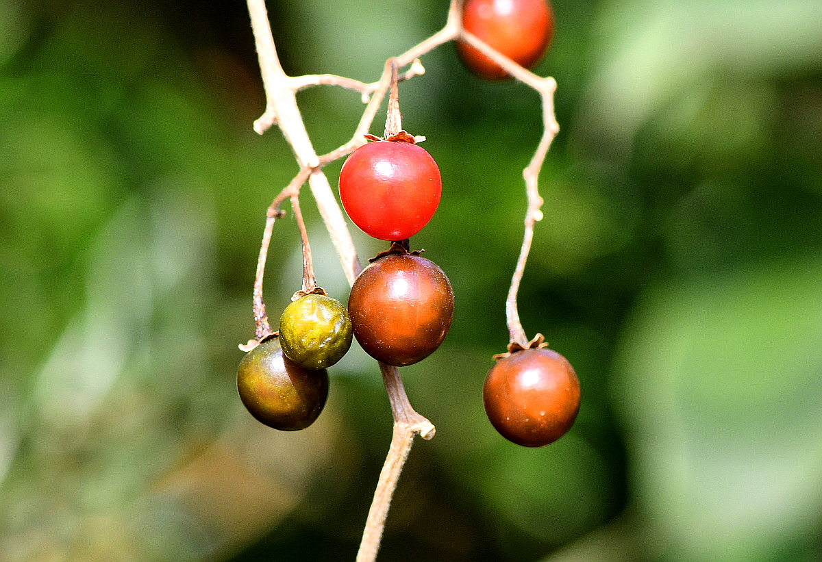 열매는 장과로서 둥글고 지름 8 mm 정도이며 붉게 익는다.