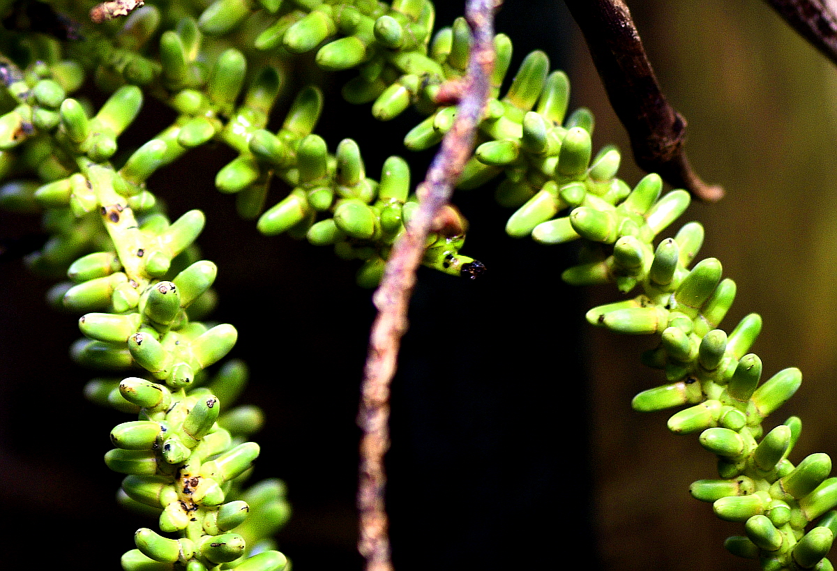 꽃차례는 거대하며 길이 1~1.5m이고, 많은 꽃차례 가지가 아래로 늘어져 있다.