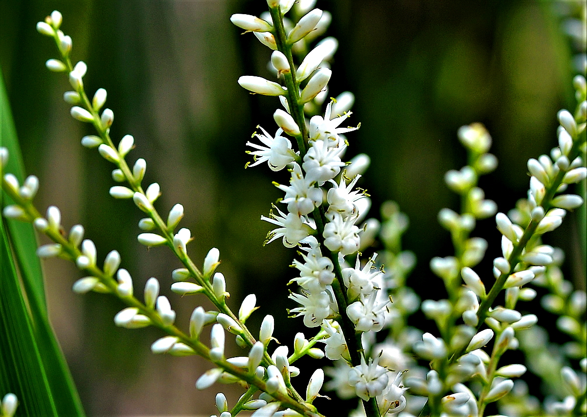작은 꽃이 모여나고 길이 1.5cm 내외의 관상화로 6개로 갈라진다. 짙은 향기를 내기도 한다.