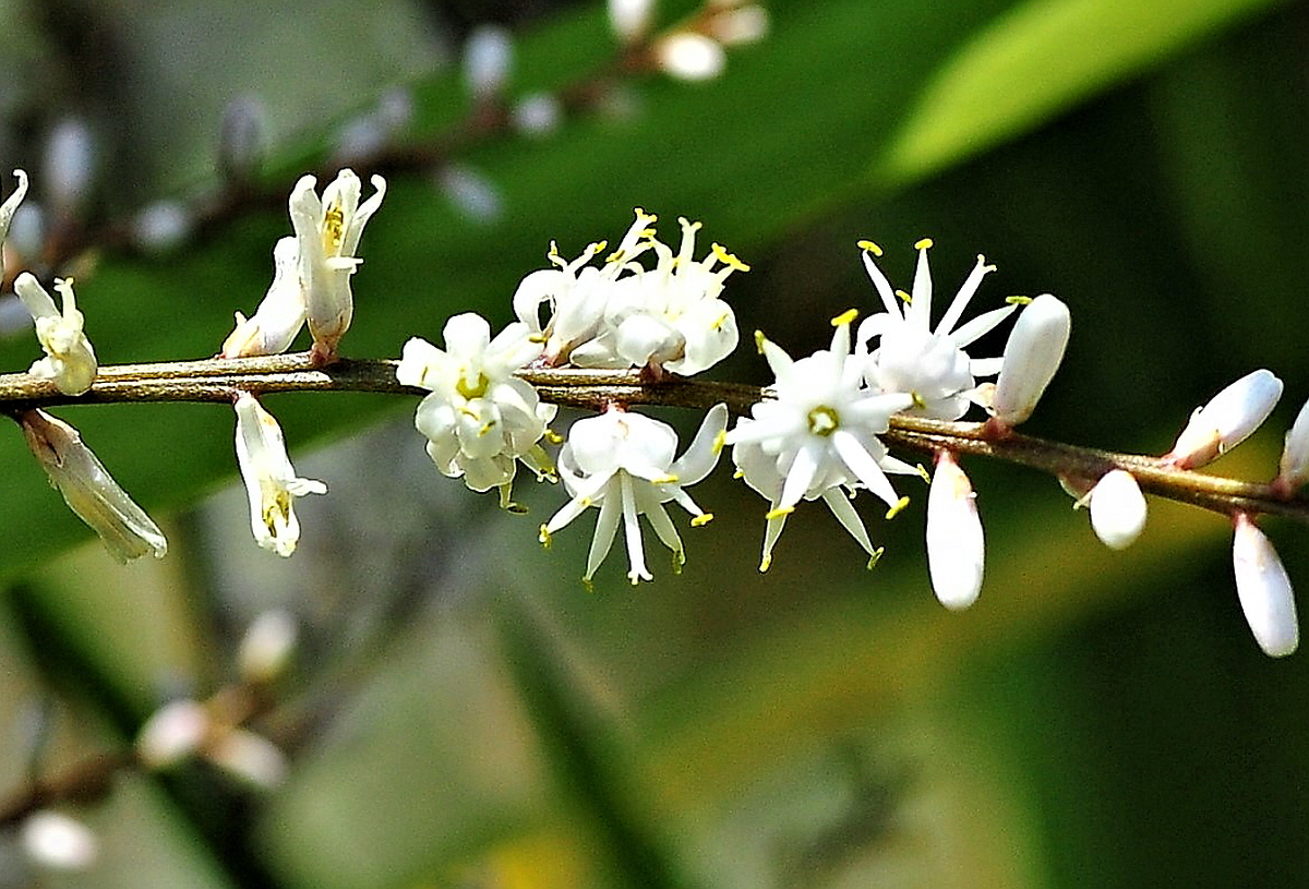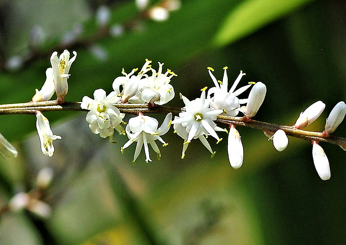 작은 꽃은 길이 1.5cm 내외의 관상화로 6개로 갈라진다. 짙은 향기를 내기도 한다.
