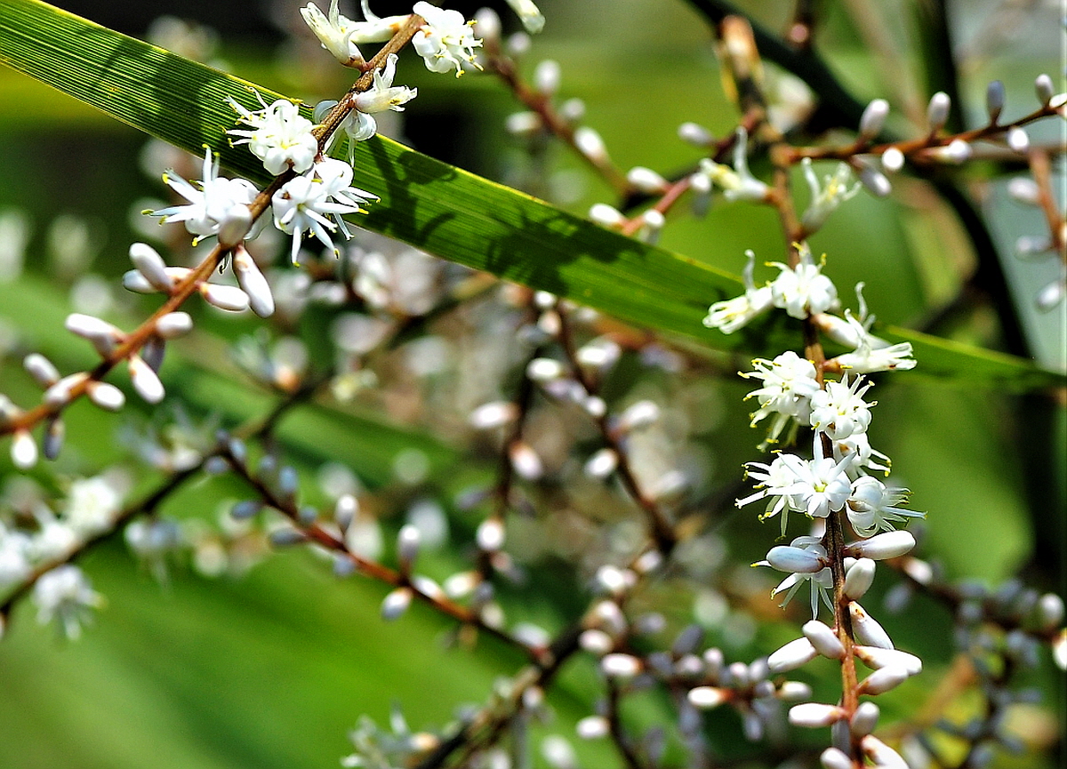 꽃은 4~6월(봄,초여름)에 흰색으로 줄기 윗부분 잎겨드랑이의 꽃이삭에 원추꽃차례로 달린다.