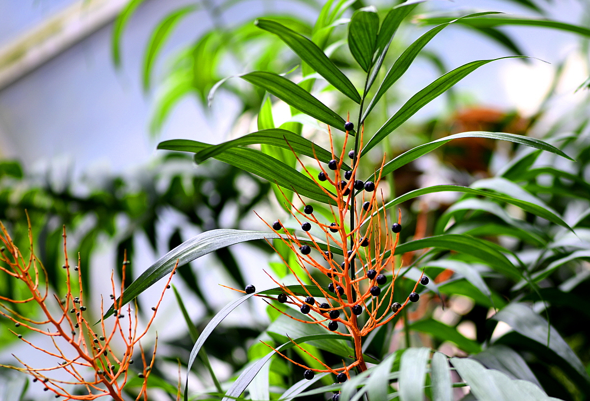 팔로아야자(Parlor palm)라고 부르기도 하며 작은 화분에 심어 키울 경우 20~30cm 정도이나