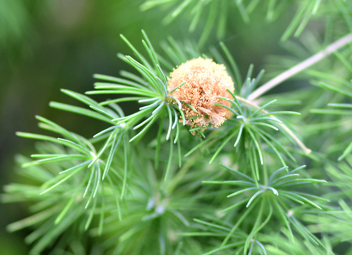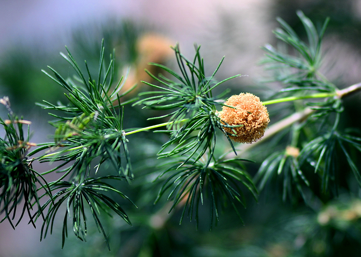 잎은 어굿나기로 가지에 모여나고 낙엽송 잎같이 밀생하여 달린다.잎길이는 1~2㎝ 정도이다.