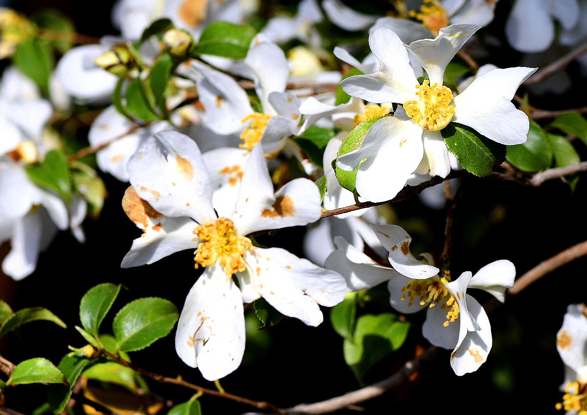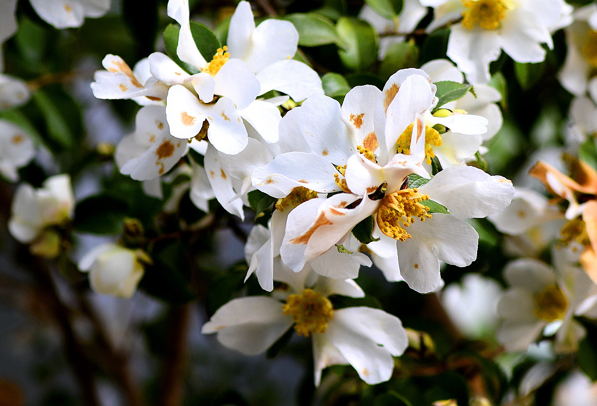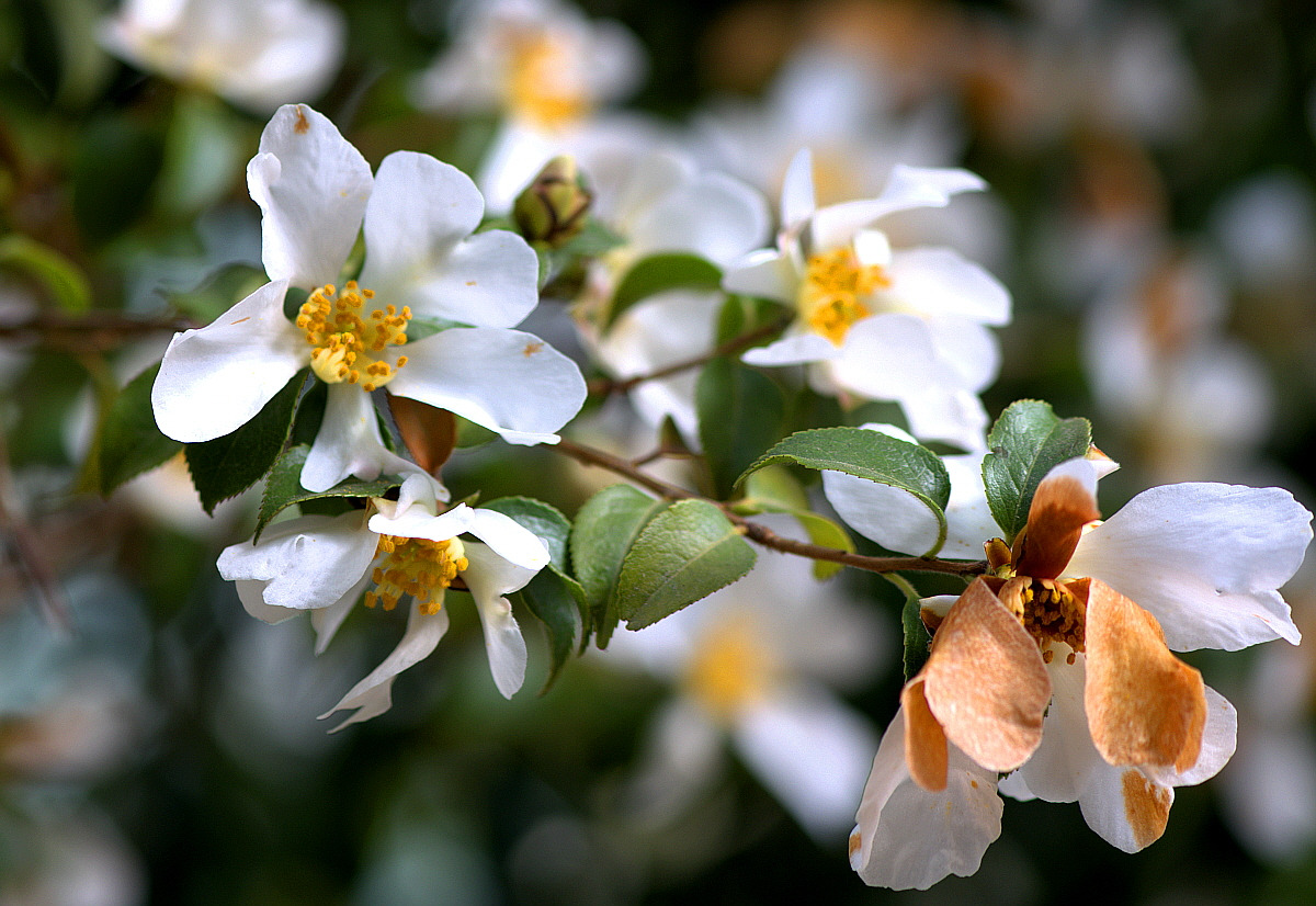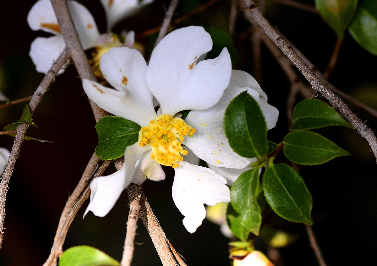 흰꽃이 피는 Camellia shensiensis는 중국의 가장 북쪽에 분포한다.
