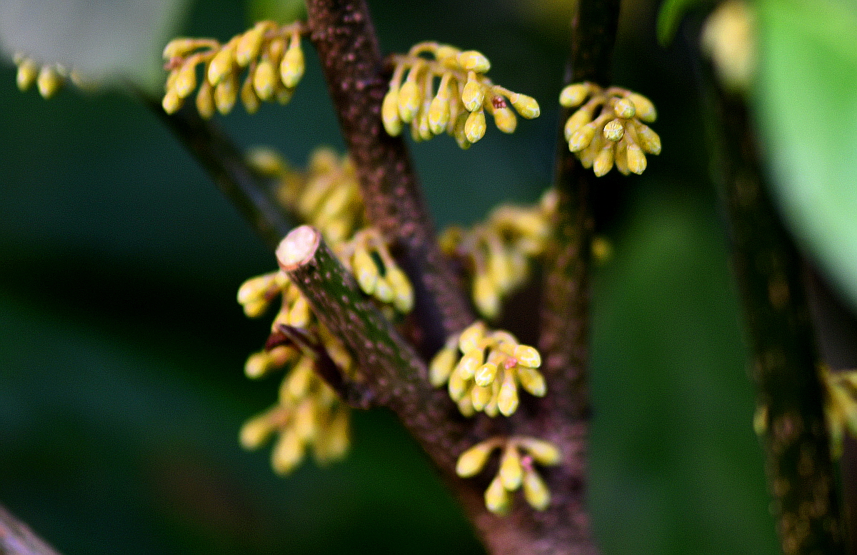 꽃은 4~5월에 연한 노란색으로 잎겨드랑이에서 나와 10~27개가 총상꽃차례에 달려 핀다.